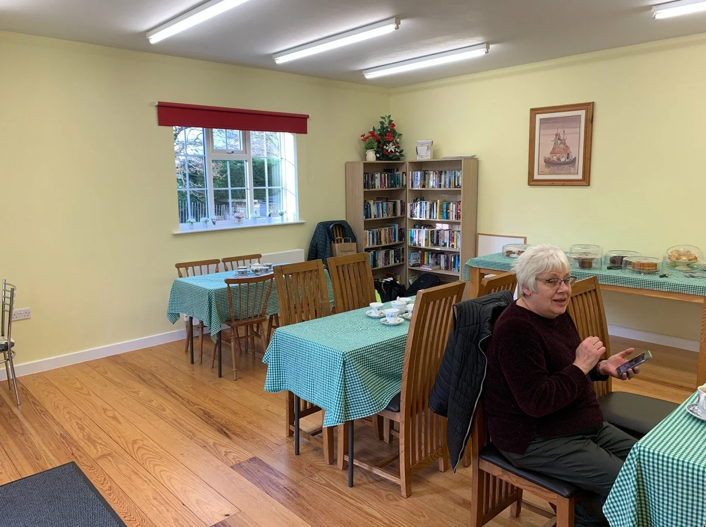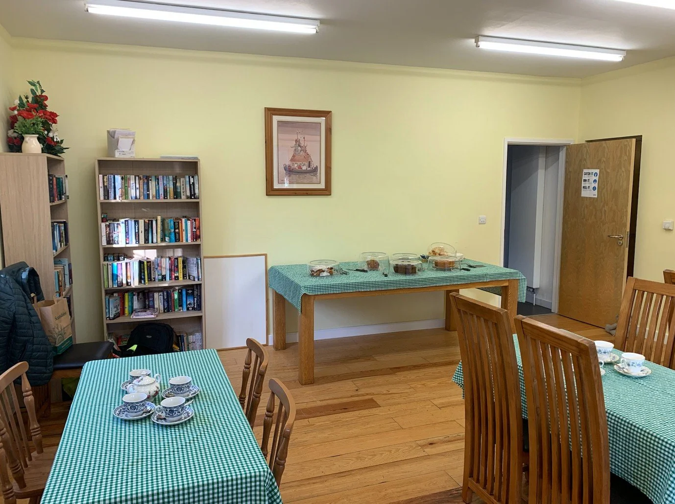 The meeting room has separate access, and can be used either with or without the hall. It has access to the fully-equipped kitchen, which can cater for 100 covers. It is light and airy, and was redecorated in 2021. A book exchange scheme runs on an ongoing basis.
